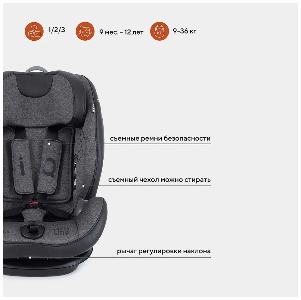 Купить Автокресло детское Rant IQ Genius Line Isofix BH12319i группа 1/2/3 от 9 мес. до 12 лет вес 9-36 кг рост 80-145 см темно-серый