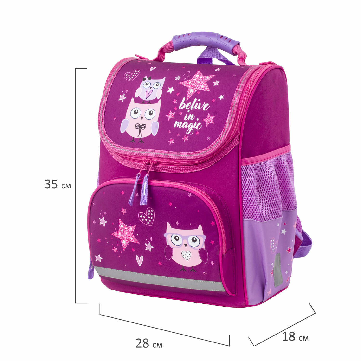 Ранец пифагор BASIC, с эргономичной спинкой, Smart owls, 35х28х18 см, 229933