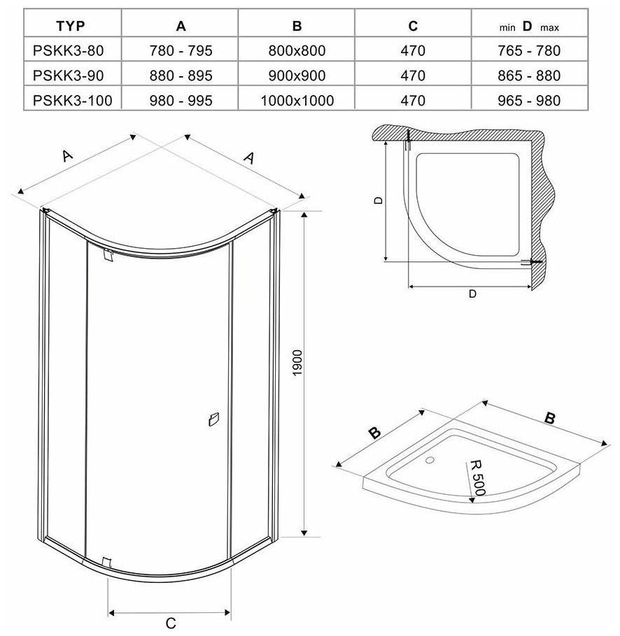 Ravak Душевой уголок Ravak PSKK3-90 Transparent, профиль черный