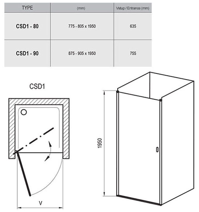 Душевая дверь Ravak CSD1 90 блестящая + Транспарент