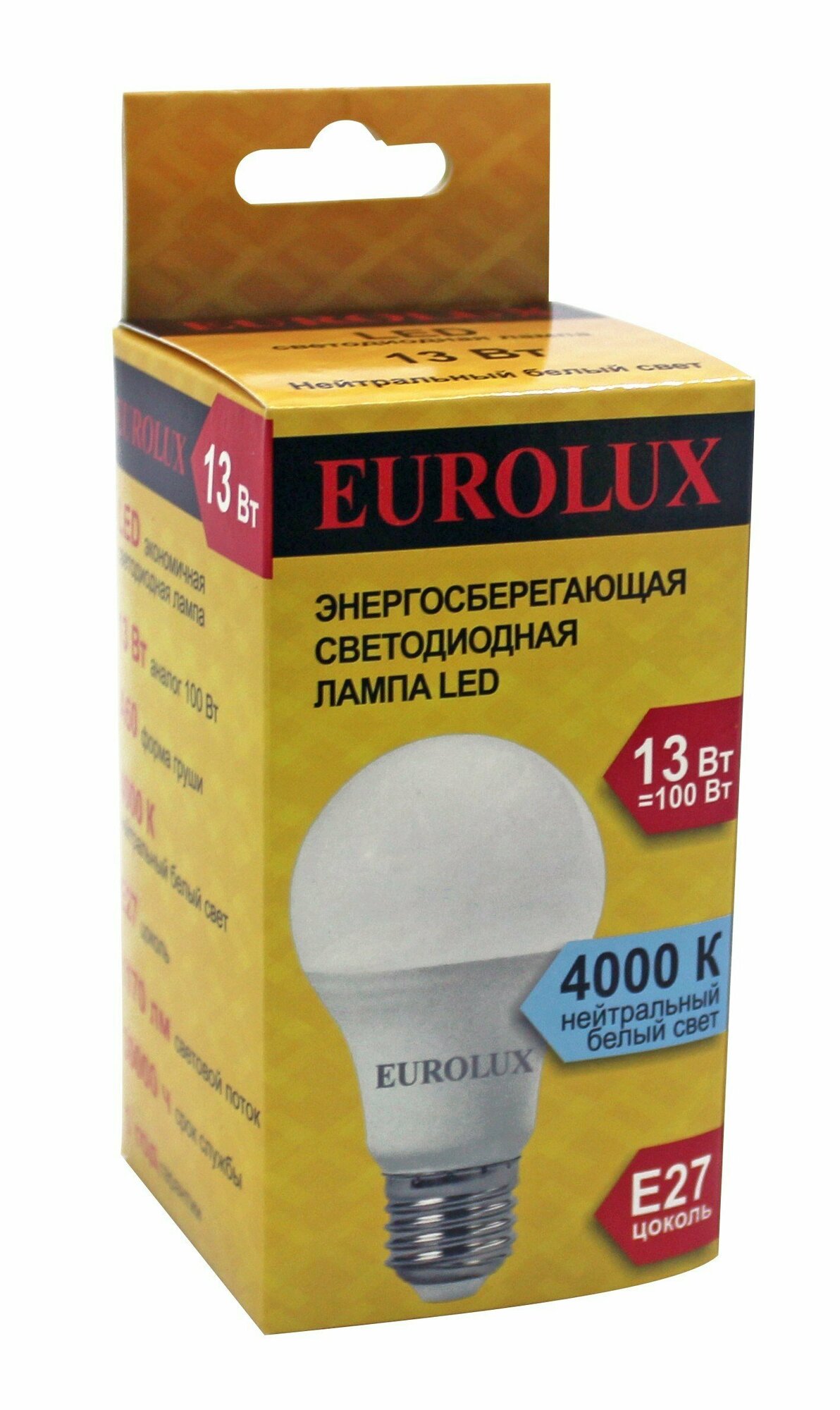 EUROLUX Лампа светодиодная EUROLUX LL-E-A60-13W-230-4K-E27, 76/2/18