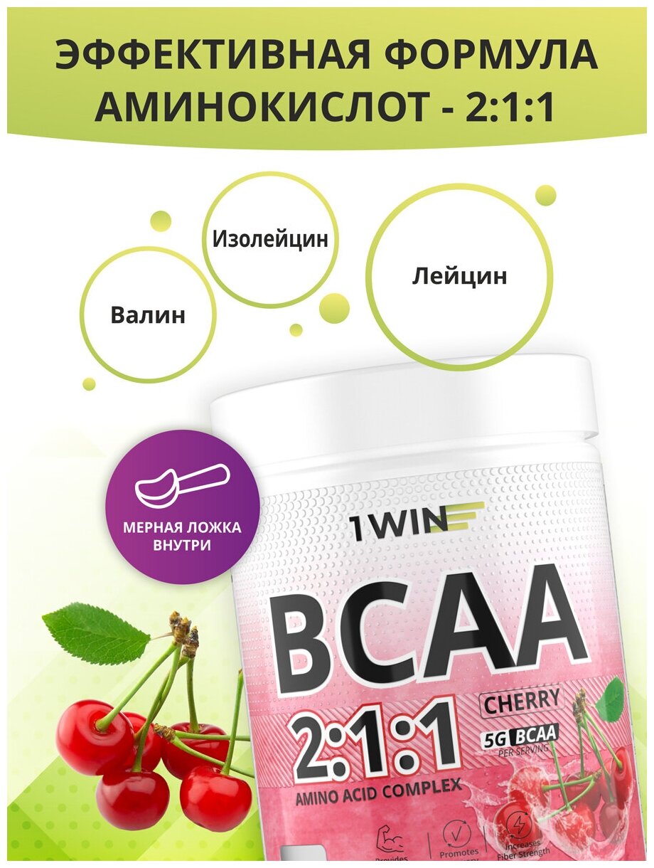 BCAA 2:1:1 Аминокислоты порошок 1WIN (БЦАА), быстрорастворимые, вкус Вишня, 30 порций