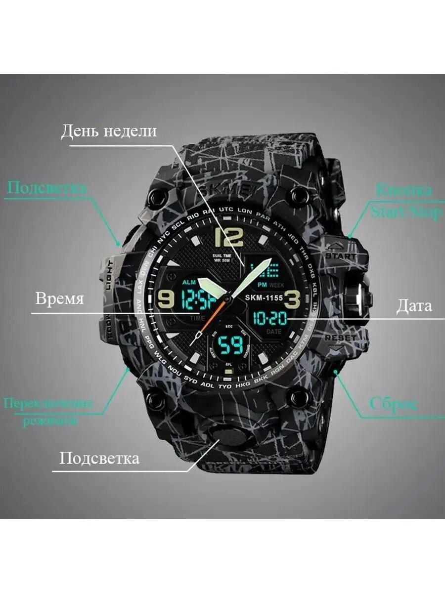 Спортивные наручные часы SKMEI 1155, водонепроницаемые и ударопрочные