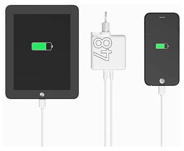 | Дополнительная информация | Огнестойкий пластик, в комплекте к зарядке две сменные насадки - переходники для UK и EU стандартов розеток, устройство можно использовать для зарядки MacBook 12 дюймов или MacBook Air 13 дюймов, iPhone и 8 iPad Pro |