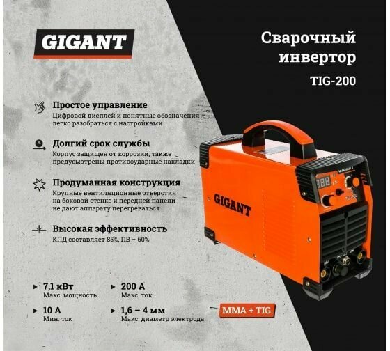 Сварочный инвертор Gigant TIG-200 интересное: