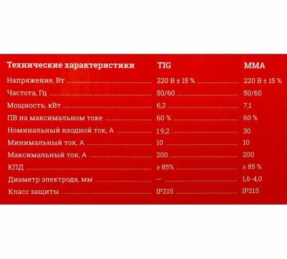 | Макс. сварочный ток при непрерывной работе | 200 А |