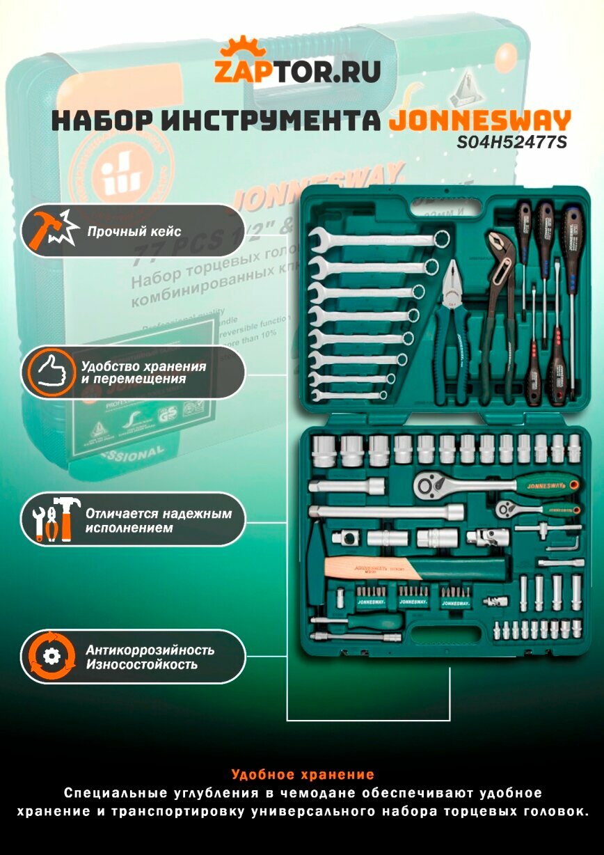 Набор инструментов Jonnesway S04H52477S 77 предметтов