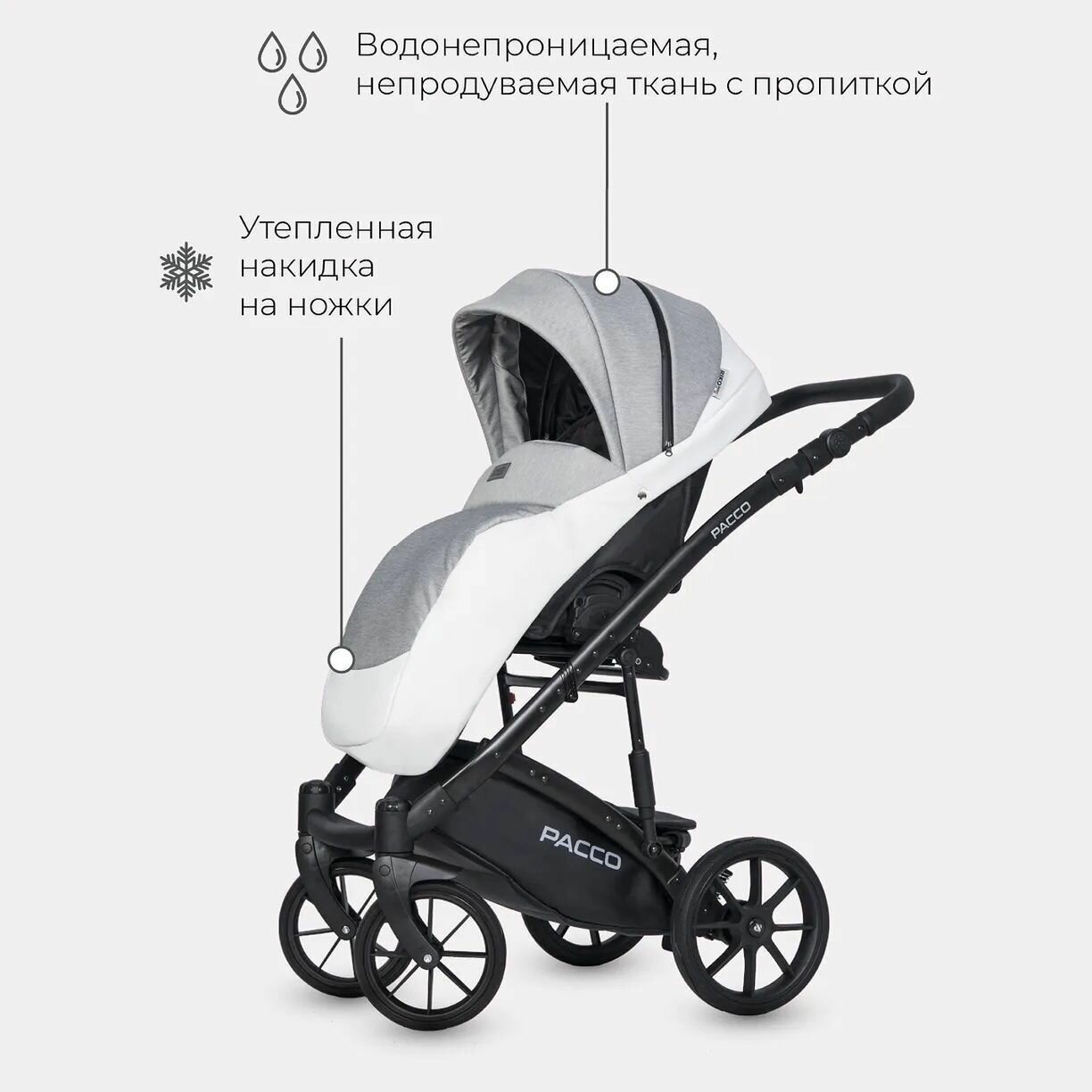 Купить Коляска PACCO (2 в 1) (RIKO BASIC) 05 Grey Fox (серый-белый)