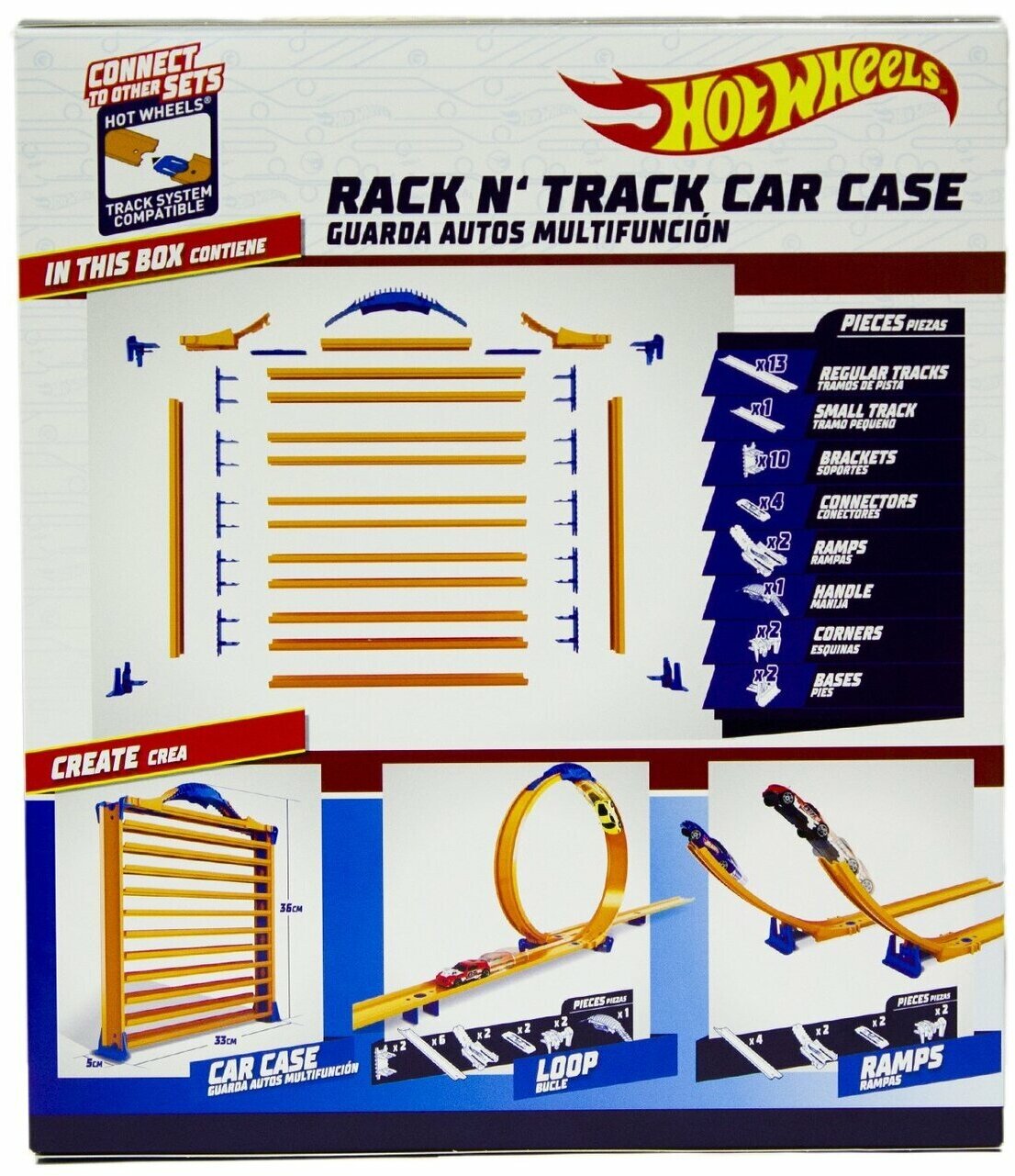 | Дополнительная информация | кейс вмещает в себя 44 машинок, 11 уровней; уголки и боковые стенки кейса можно трансформировать в игровую трассу (петлю или трамплины) |