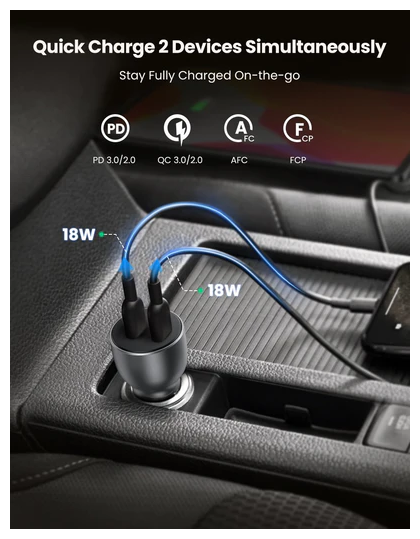 Автомобильное зарядное устройство Ugreen CD213 (70594) USB-C PD + USB-C PD 36 Вт, темно-серый