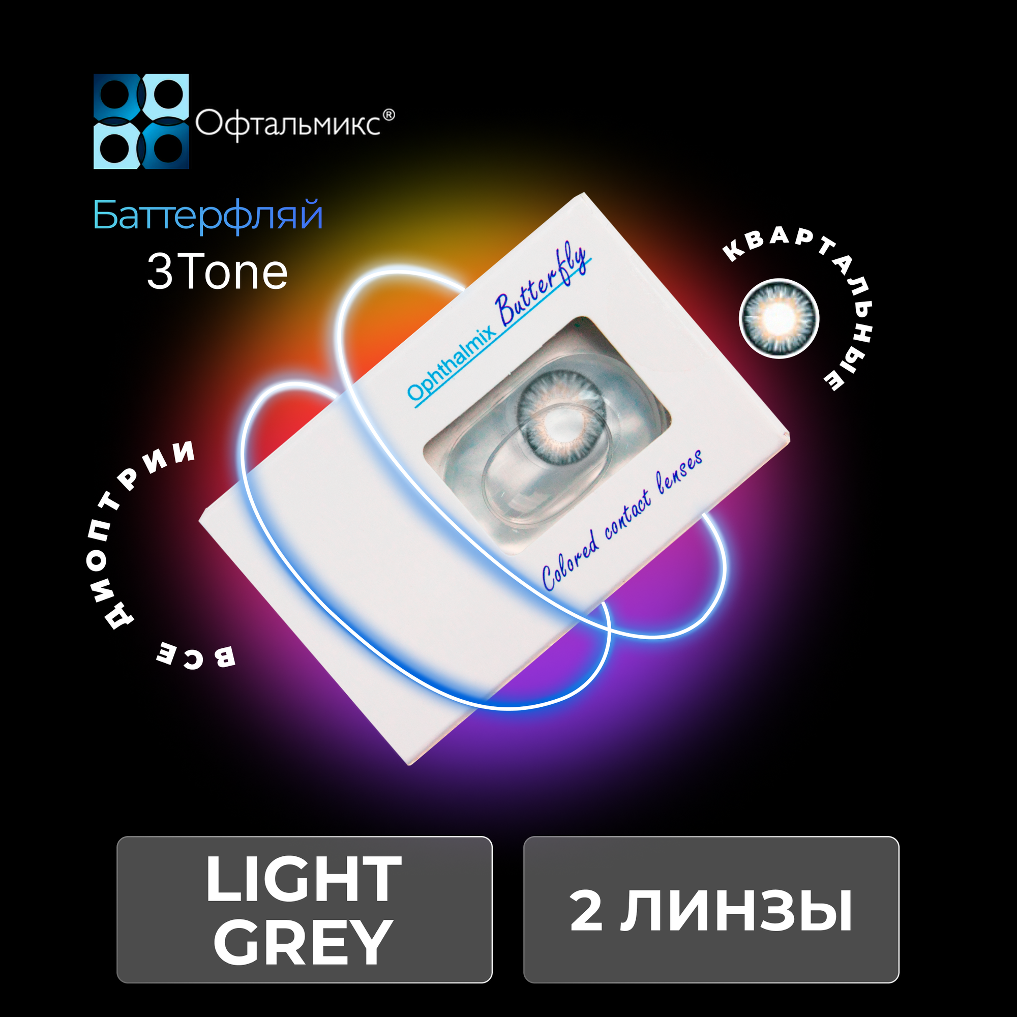 Офтальмикс Butterfly 3-тоновые (2 линзы) -0.00 R 8.6 Light Grey (Серый)