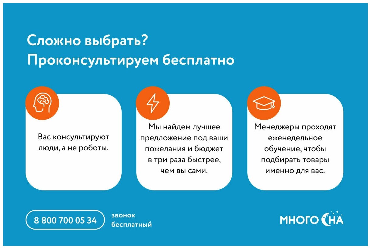 | Отзыв: | Подруга посоветовала заказать данную модель, сказала невероятно удобный, да еще и взяла нестандартного размера. Высота 19 см мне подошла. За невысокую стоимость я получила комфортный матрас. Спина отдыхает, ноги не затекают и в целом качество сна поменялось в лучшую сторону. |