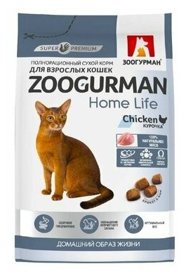 Зоогурман Home Life сухой корм для взрослых кошек с курочкой - 1,5 кг