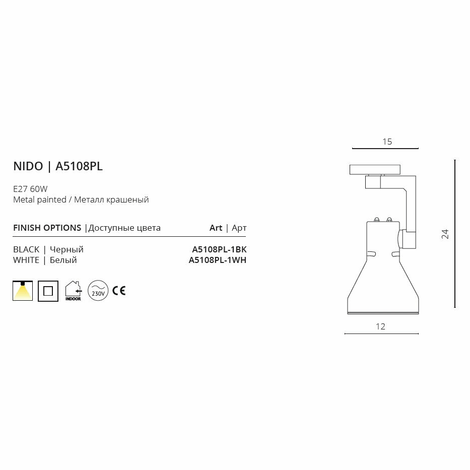 Трековый светильник A5108PL-1BK E27