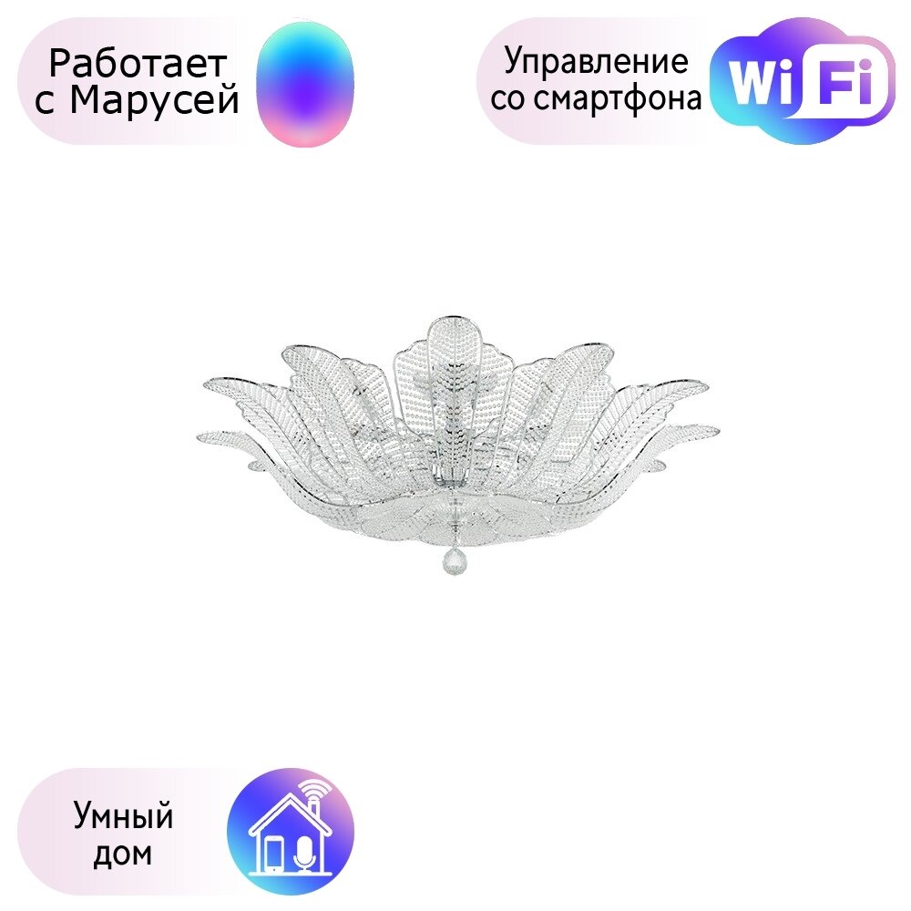 Люстра с пультом светодиодная потолочная 176W, 8 ламп, цветок, большая, белая, LEDCITY