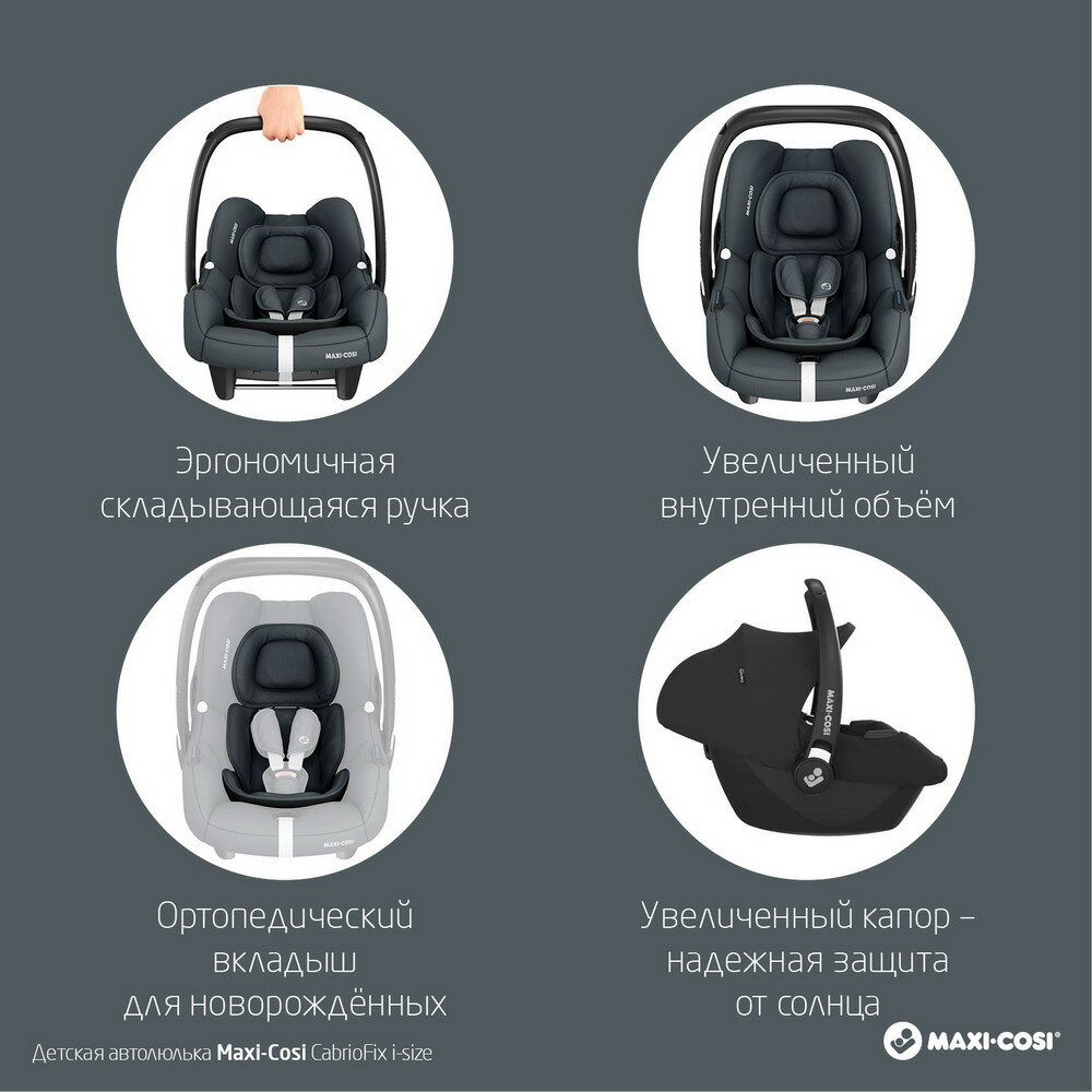 СохранитьАвтокресло группа 0+ (до 13 кг) Maxi-Cosi CabrioFix i-Size, essential graphite интересное: