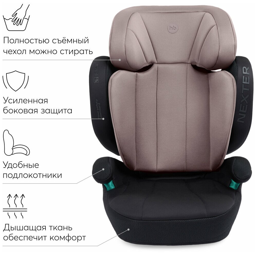 Автокресло детское Happy Baby с креплением Isofix Nexter группы 2/3, 15-36 кг, рост 100-150 см, бежевое
