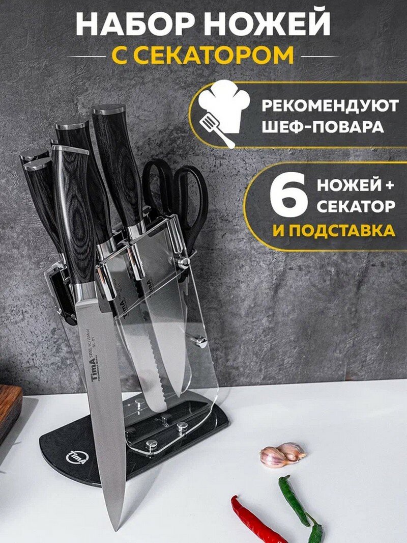 Набор TimA Silver SL-01, 6 ножей и ножницы с подставкой интересное: