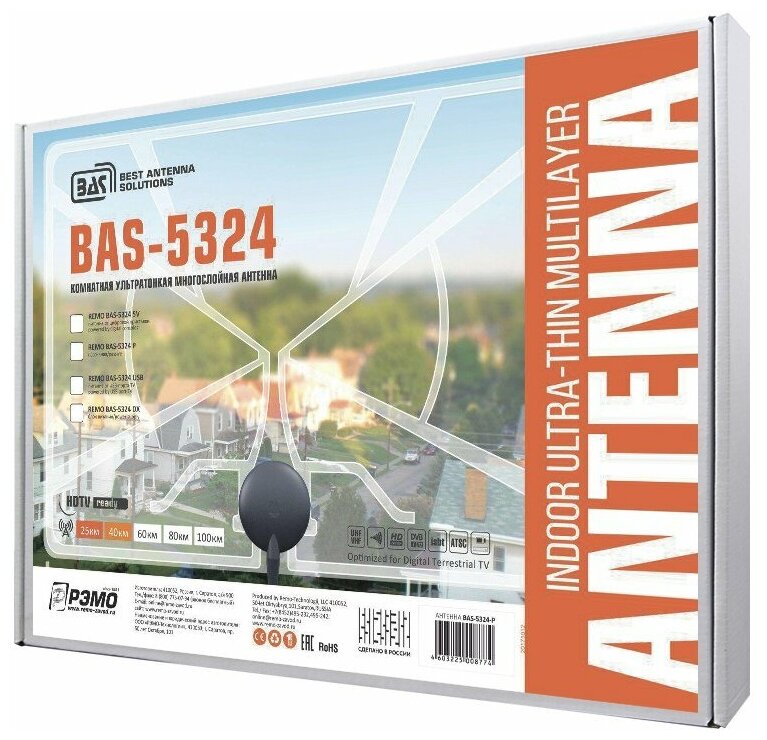 Купить Антенна"РЭМО" BAS-5324-DX, комнатная, активная, 33 дБи, 5В, DVB-T2, цифровая РЭМО 4515375 .
