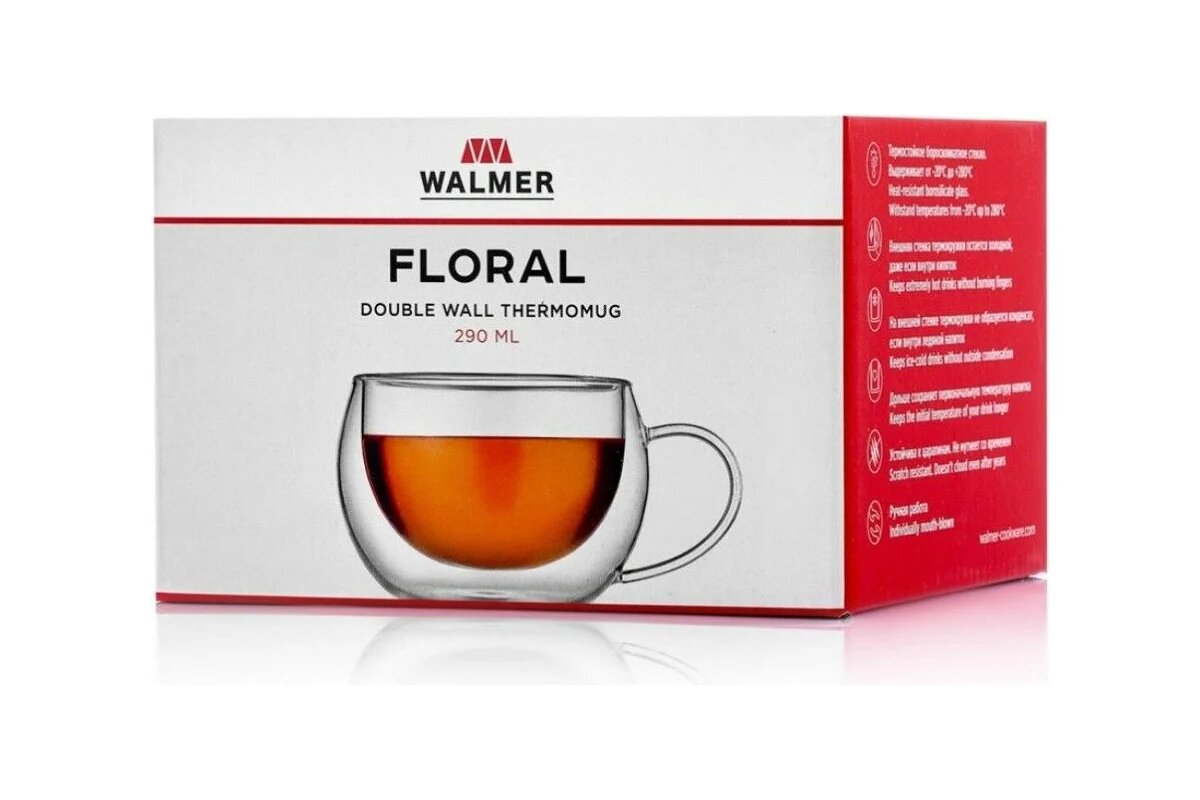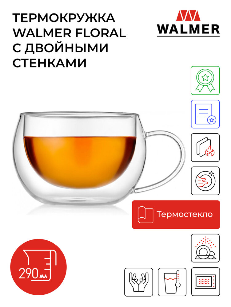 кружка WALMER Floral 290мл двойная стенка термостекло