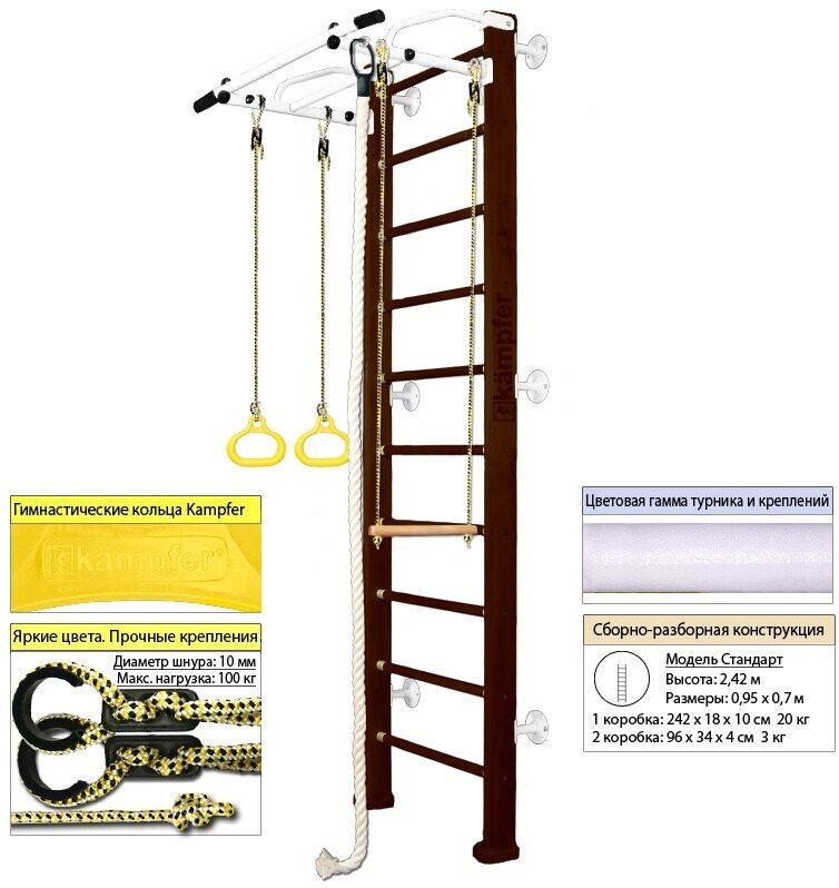 СохранитьШведская стенка Kampfer Helena Wall №5 Шоколадный Стандарт белый турник интересное: