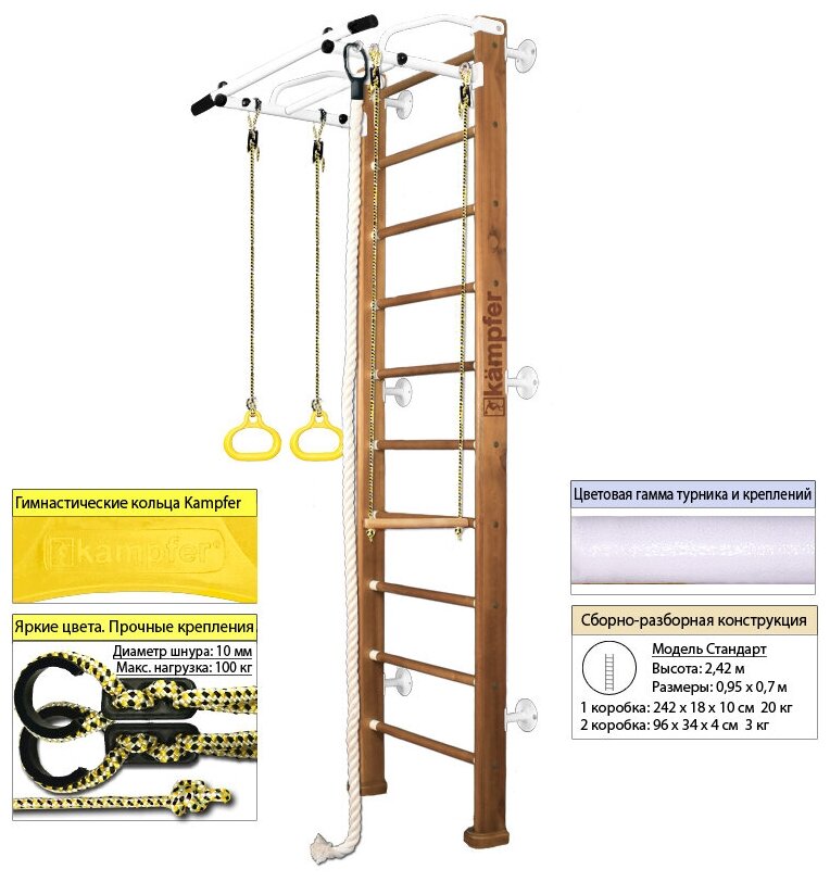 Купить Шведская стенка Kampfer Helena Wall №2 Ореховый Стандарт белый турник