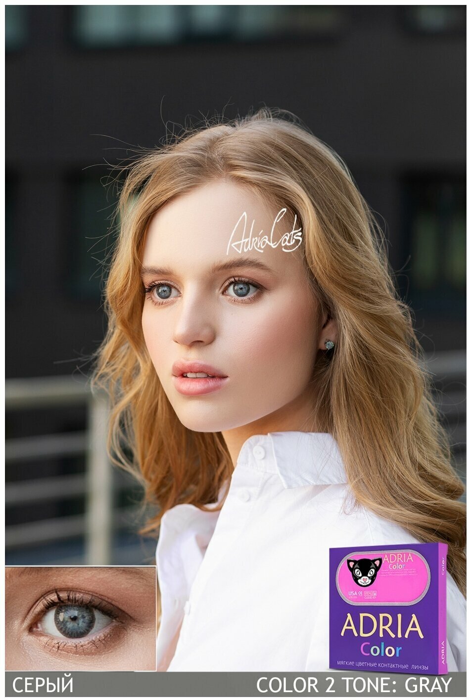 Контактные линзы цветные ADRIA, Adria Color 2T, Квартальные, GRAY, -3,00 / 14,2 / 8,6 / 2 шт.