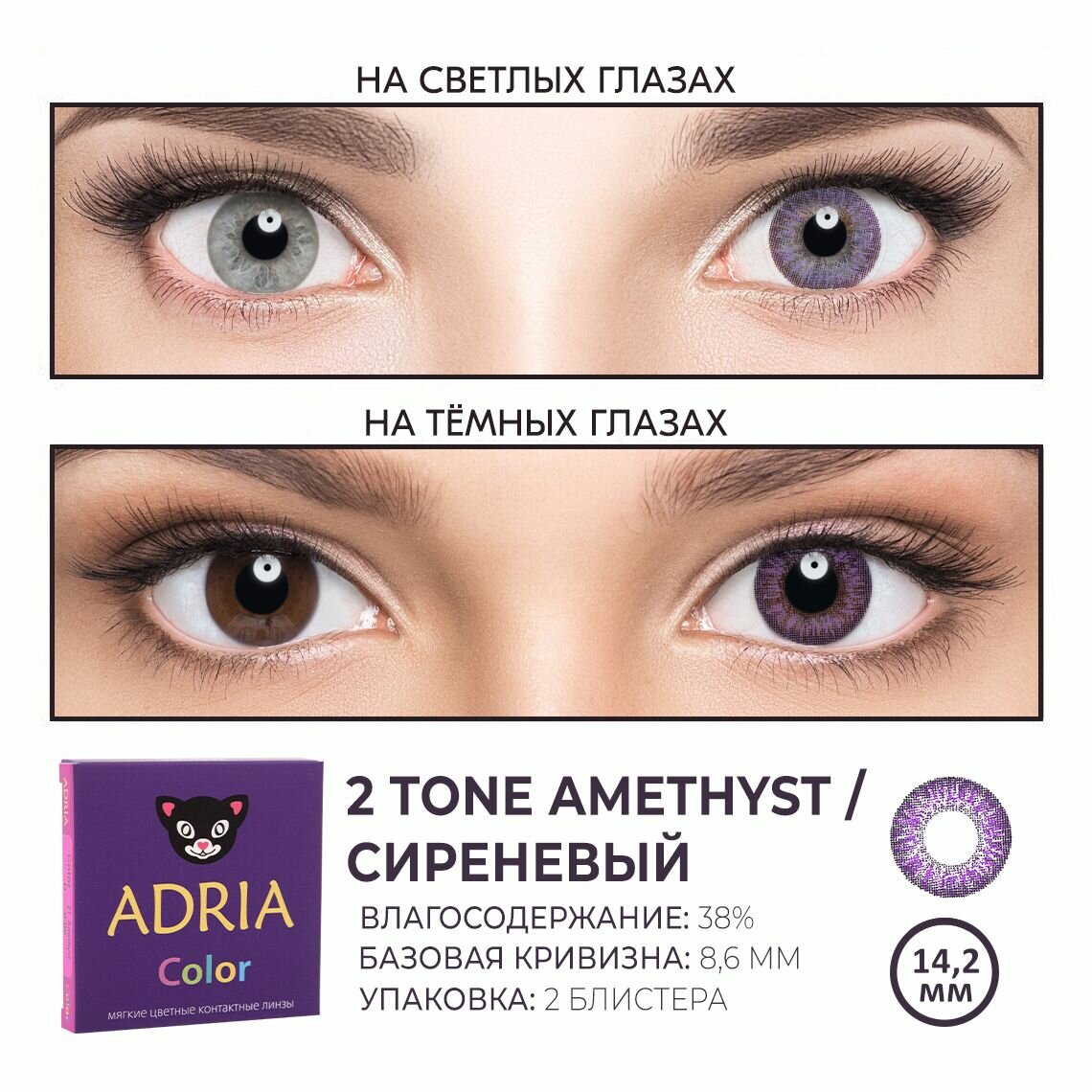 Купить Контактные линзы цветные ADRIA, Adria Color 2T, Квартальные, AMETHIST, -2,50 / 14,2 / 8,6 / 2 шт.