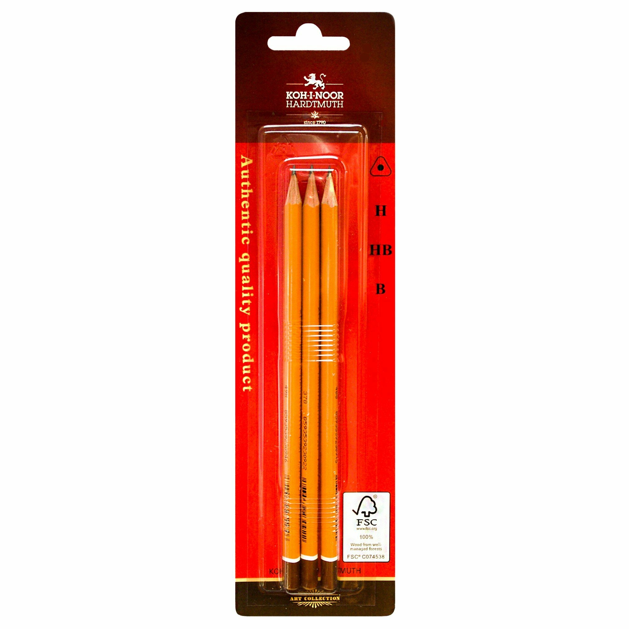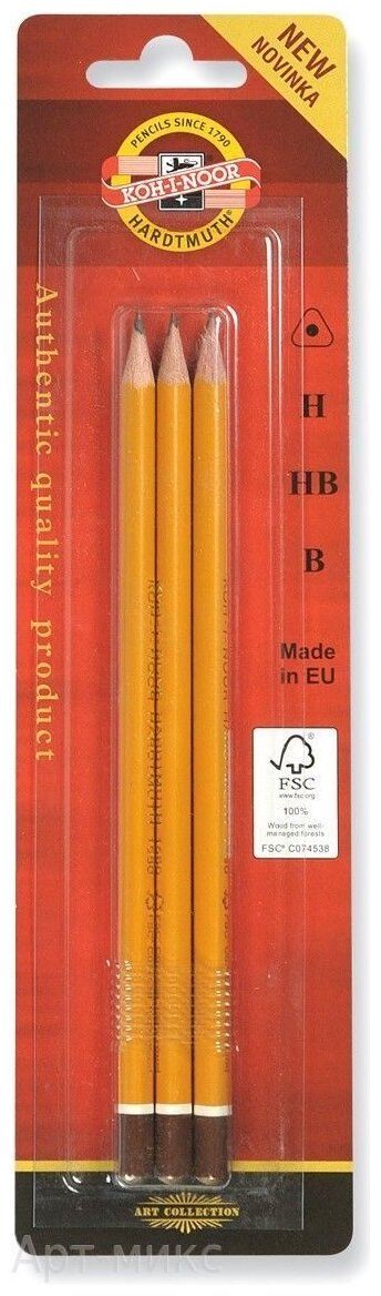 Набор чернографитных карандашей KOH-I-NOOR "1580", 3 шт, H, HB, B, заточенные (1580003001BLRU)