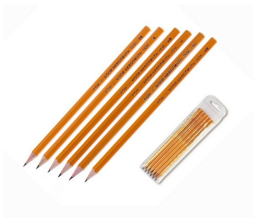Карандаши чернографитные KOH-I-NOOR, набор 6 шт., 2Н, Н, НВ-2, В, 2В, пластиковая упаковка
