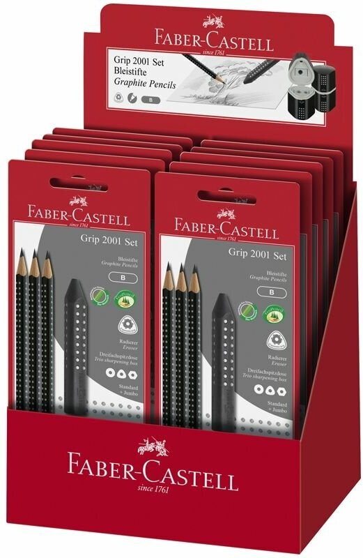 Набор карандашей ч/г Faber-Castell "Grip 2001", 3шт., В, заточен, трехгр.+ластик, точилка