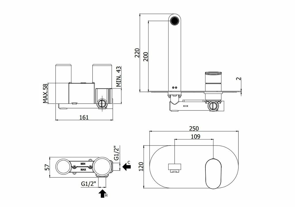 Смеситель встраиваемый для раковины излив 200 мм, Paffoni CANDY, хром. CA105CR
