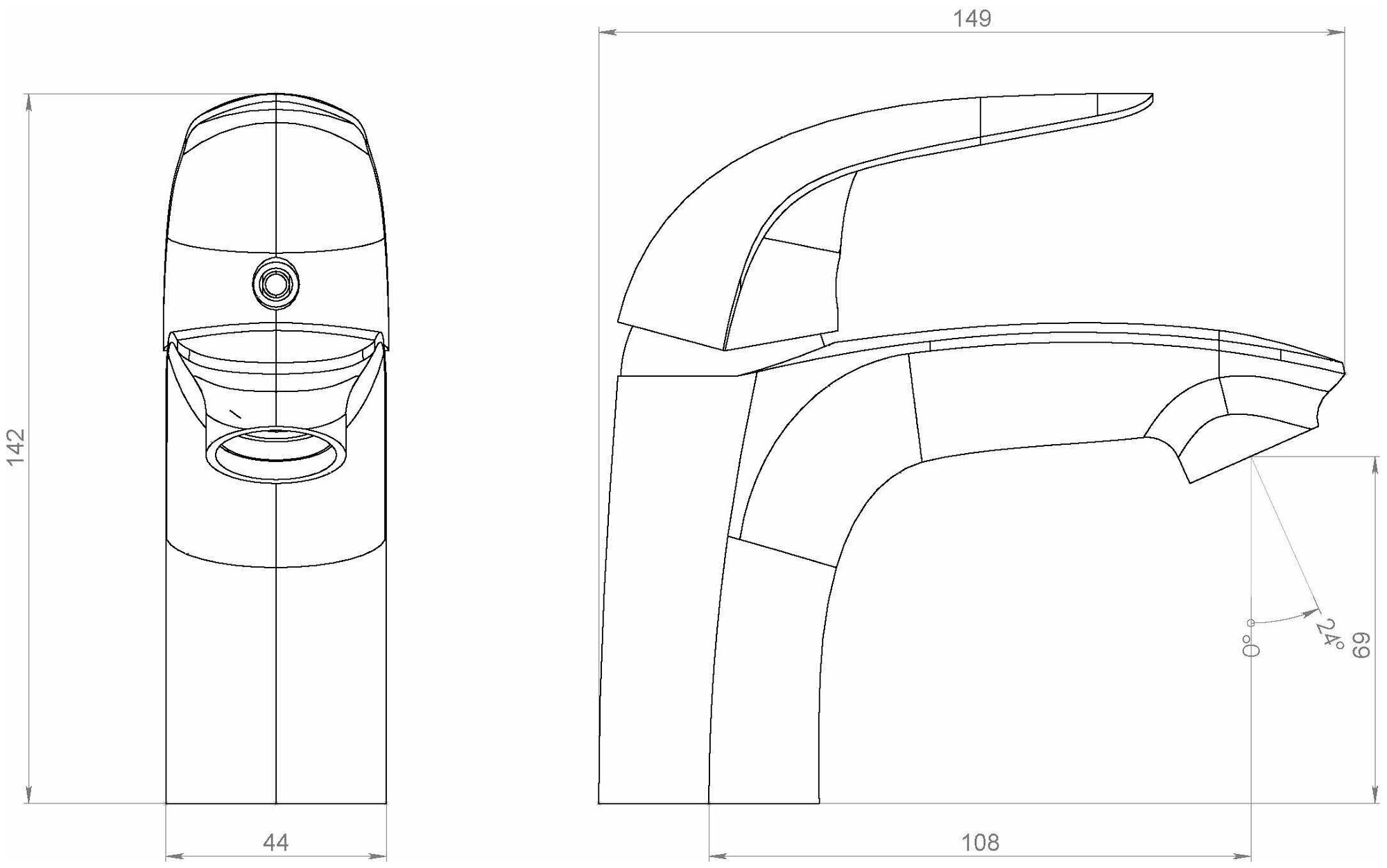 Смеситель для раковины Damixa Eclipse 310210001 излив 108 мм, керамический картридж Light Flow, покрытие High Gloss, аэратор EcoSave, Дания, латунь