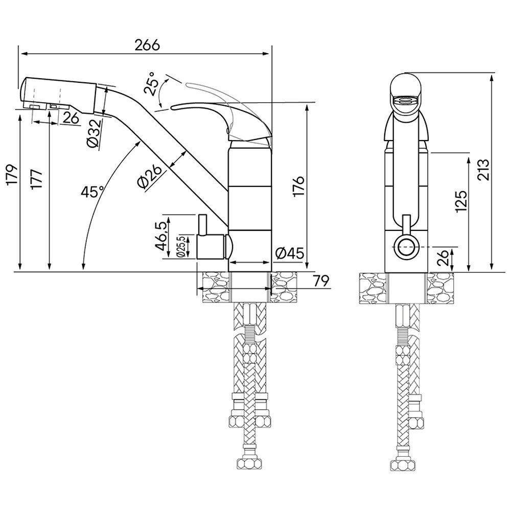 Смеситель для кухни HESSEN, на две воды, антрацит, He213017-401, Paulmark