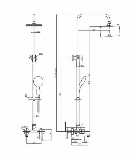 | Дополнительная информация | высота стойки для душа: 1230 мм; диаметр душевой лейки: 100 мм; длина верхнего душа: 200 мм; ширина верхнего душа: 200 мм |