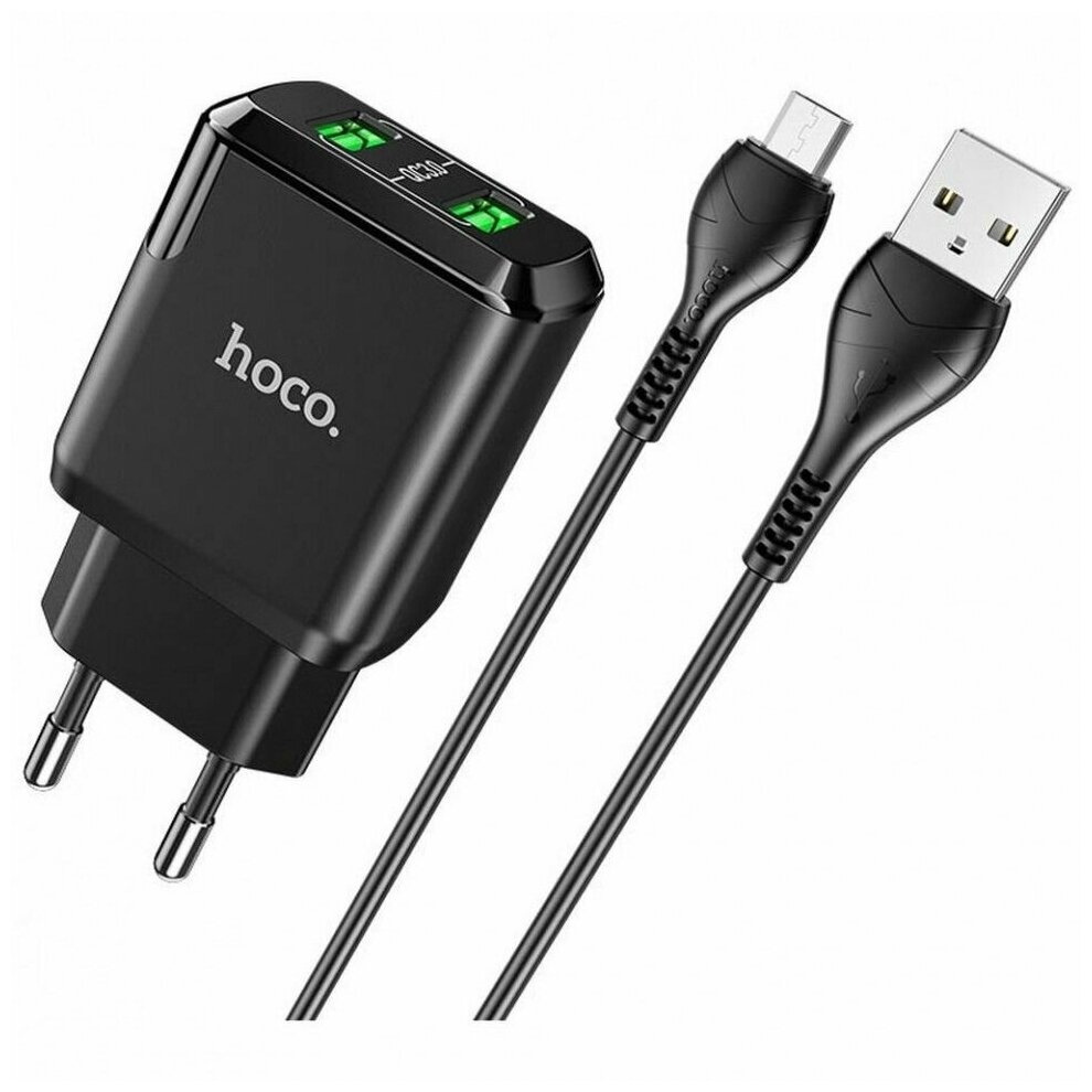 Блок питания сетевой 2 USB HOCO N6, Charmer, 3.0A, QC3.0, с кабелем микро USB, 1.0м, поликарбонат, 18W, цвет: черный