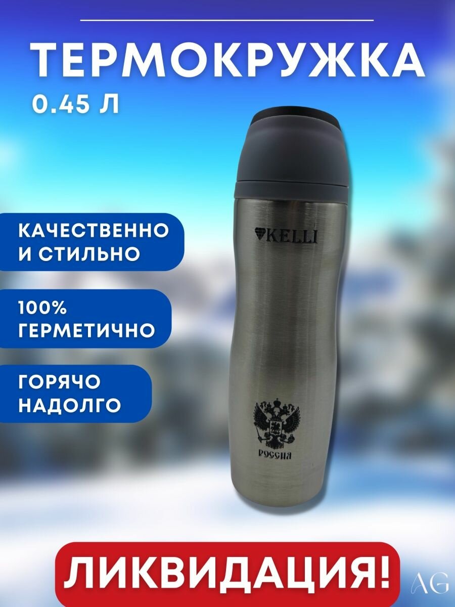 Термокружка Kelli KL-0970, 0.45 л, серебристый