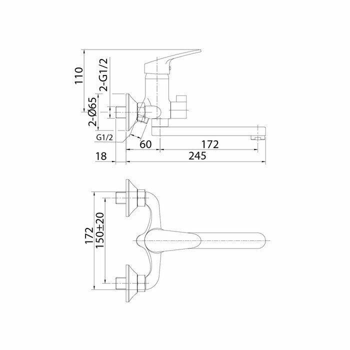 | Длина излива | 172 мм |