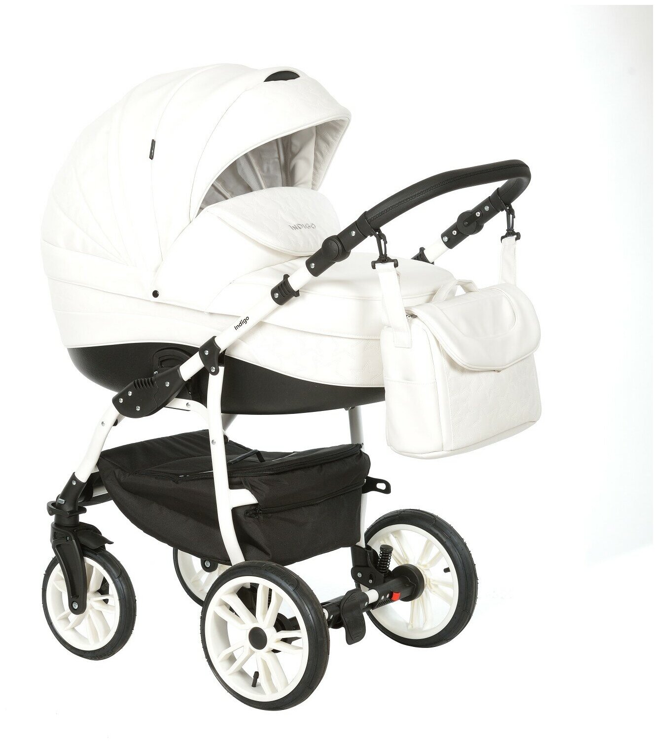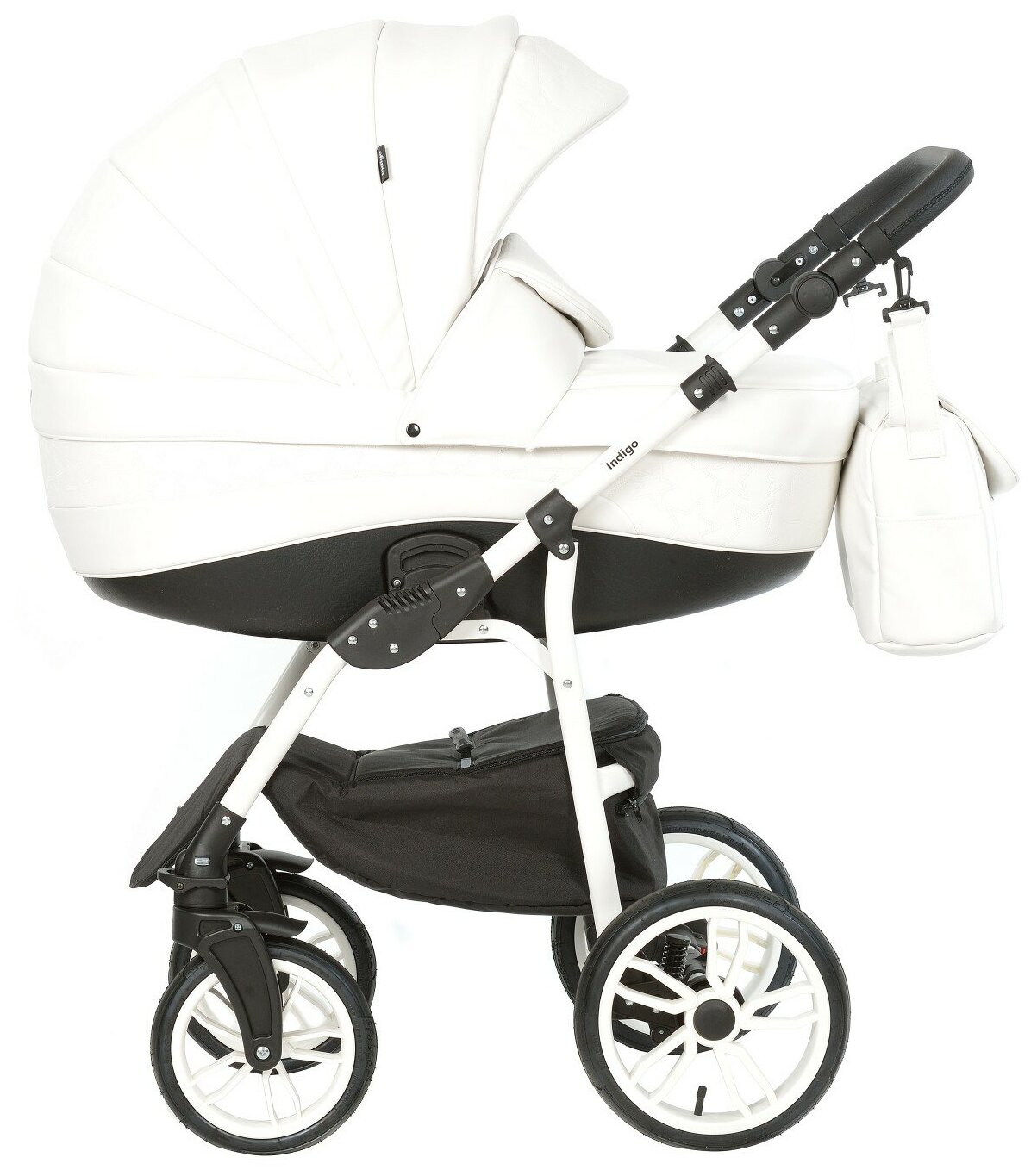 Коляска-люлька универсальная 2в1 Indigo Special прогулочная всесезонная с большими колесами (01), белый