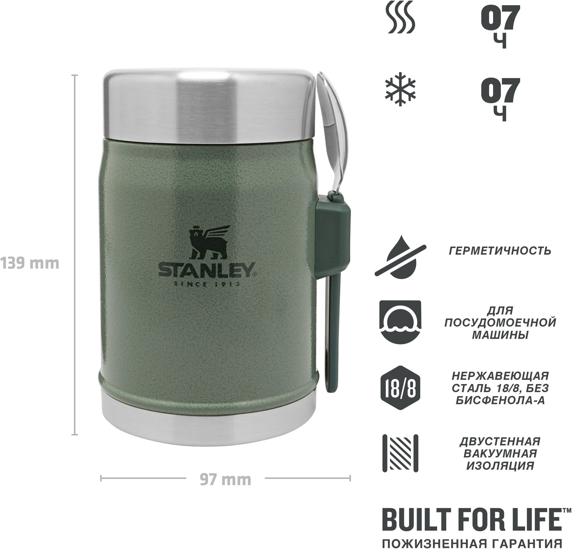 Термос для еды "Stanley Classic", 400 мл, сохраняет тепло 7 ч, зеленый Stanley 9277901 .