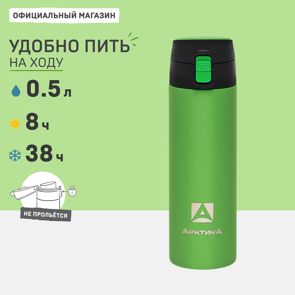 Термокружка для чая и кофе Арктика 705-500 зеленый 0,5 литров термос для напитков с кнопкой-фиксатором
