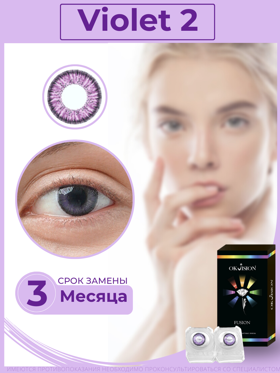 СохранитьЦветные контактные линзы OKVision Fusion 3 месяца, -15.00 8.6, Violet 2, 2 шт. интересное: