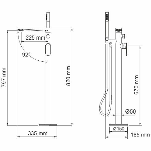 Напольный смеситель с лейкой для ванны, хром, WasserKRAFT Dinkel 5821