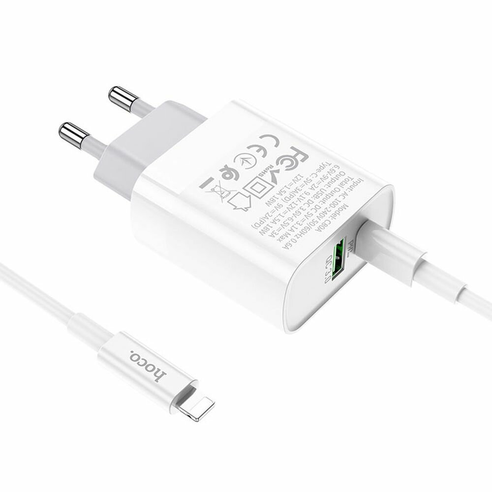 Купить Сетевое зар. устр. Hoco C80A с шнуром Type-C на Type-C 1USB/1С PD3.0/QC3.0 20W/18W белое