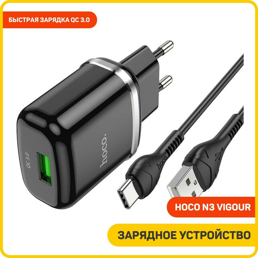 Сетевое зарядное устройство (СЗУ) Hoco N3 Vigour QC 3.0 (USB) + кабель Type-C, 3 А, черный