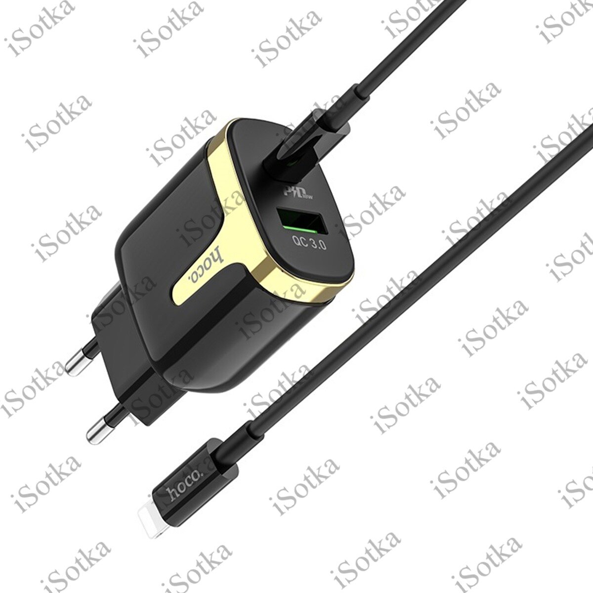 Купить СЗУ, 1 USB 3.0 QC+1 PD 18W (C79A), HOCO, Type-C to Lightning, черный