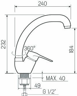 | Высота излива | 184 мм |