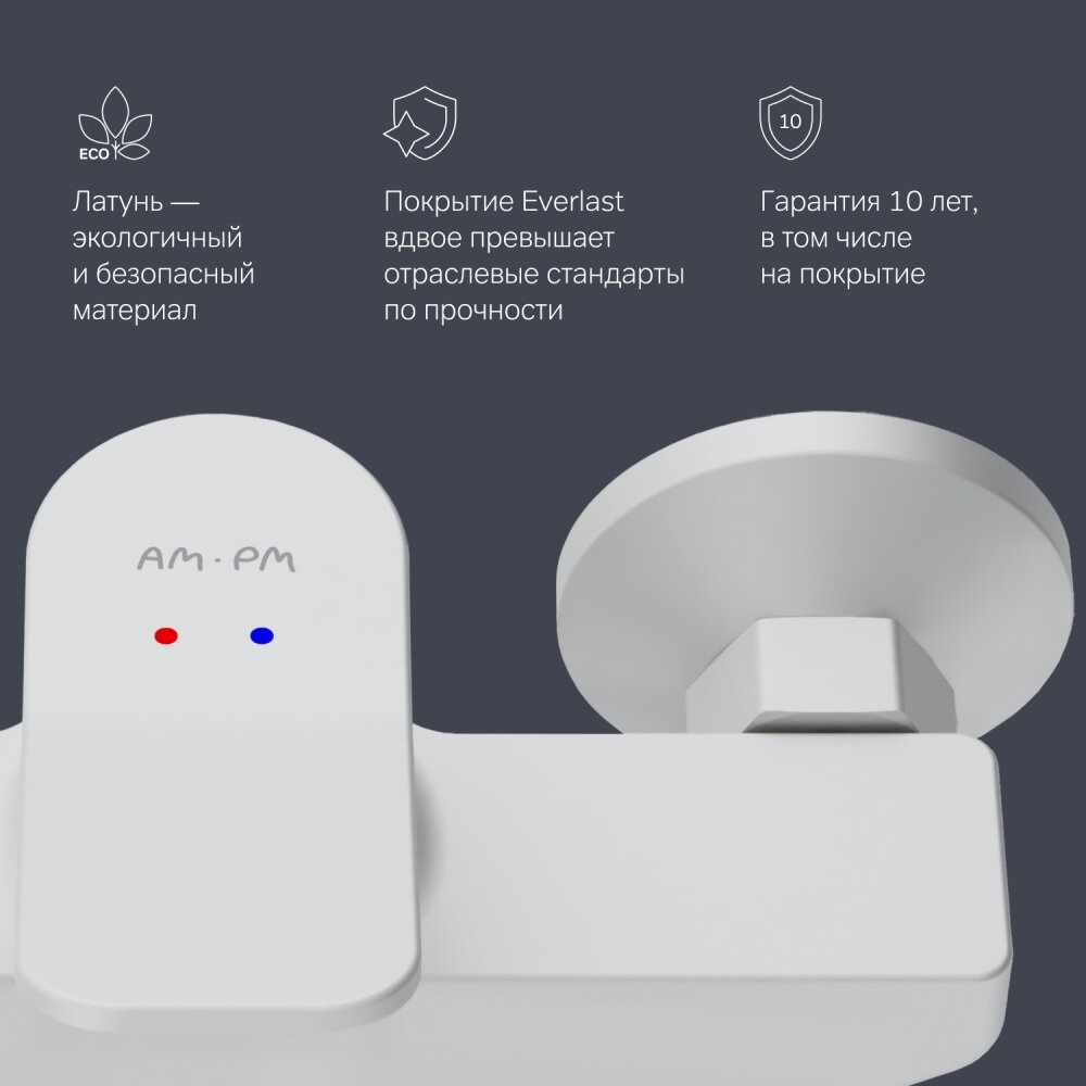 Смеситель для душа AM.PM X-Joy F85A20033 белый, стабилизирующий картридж,покрытие Everlast,Германия,высококачественная латунь,Гарантия 10 лет