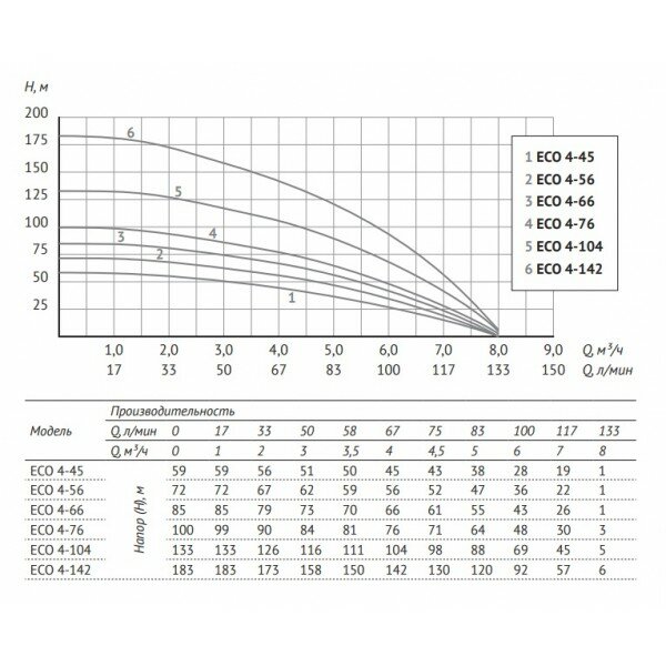 UNIPUMP ECO-4-142 (132), Насос погружной скважинный (потребляемая мощность 3000 Вт, длина кабеля 1 м) интересное: