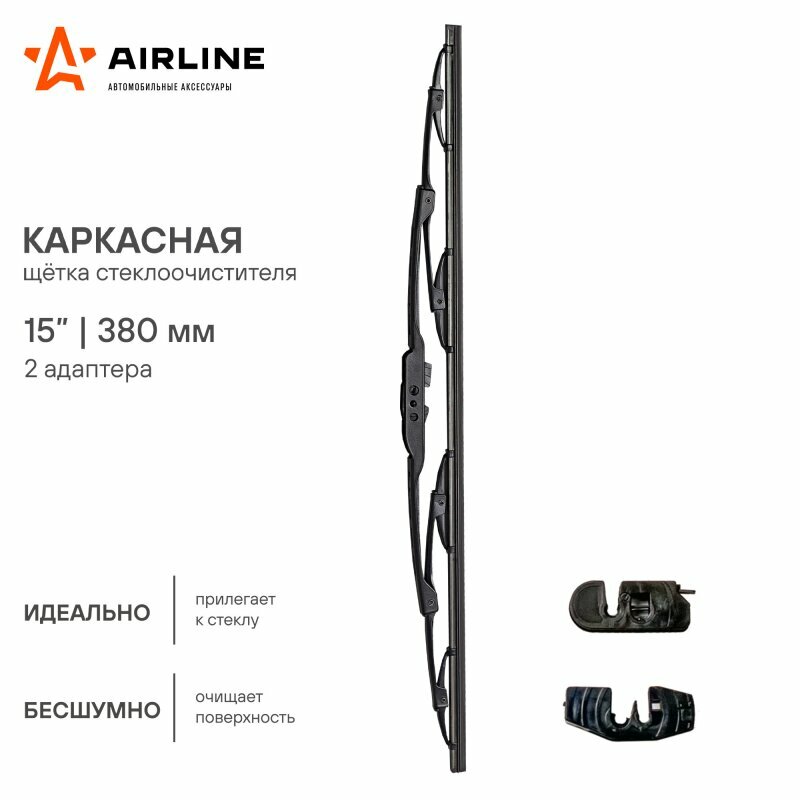 Щетка С/О Airline 380 Мм (15") Каркасная, 2 Адаптера AIRLINE арт. AWB-K-380